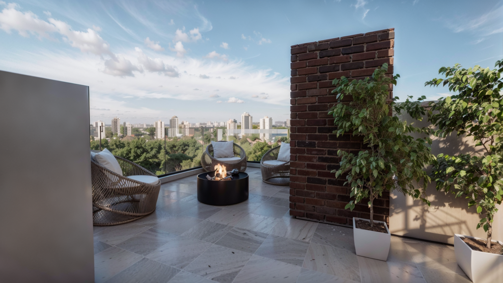 A ideia do projeto for inspirada na região de Ávila, na Espanha. Por isso a arquitetura da fachada traz elementos em tijolos e concreto, remetendo às imponentes muralhas da província.